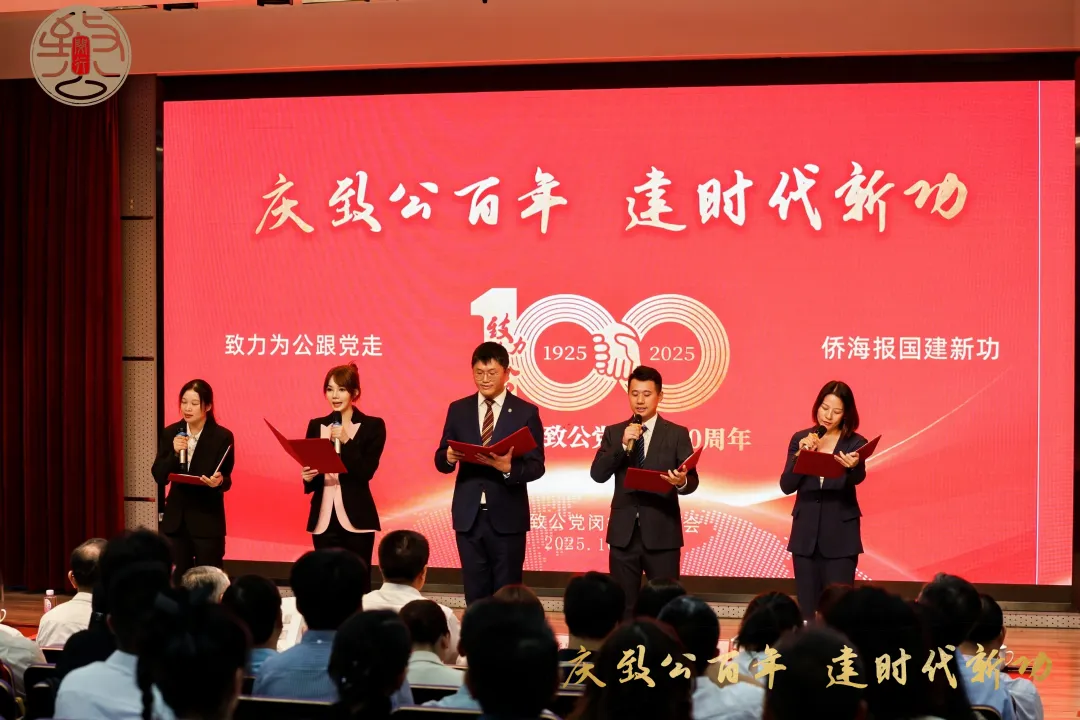 2025年10月10日,中国致公党迎来了第100个生日。当日,致公党闵行区委在上海中医药大学附属闵行晶城中学梦想剧场——闵行致公书院内举办庆祝活动。活动全面总结了致公党闵行区委在服务经济社会发展方面取得的丰硕成果,激励广大致公党党员继续秉持“致力为公”的初心,坚定不移跟党走,以“侨海报国”的使命担当,在新时代建功立业。